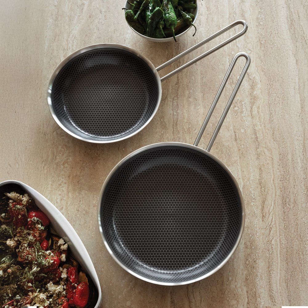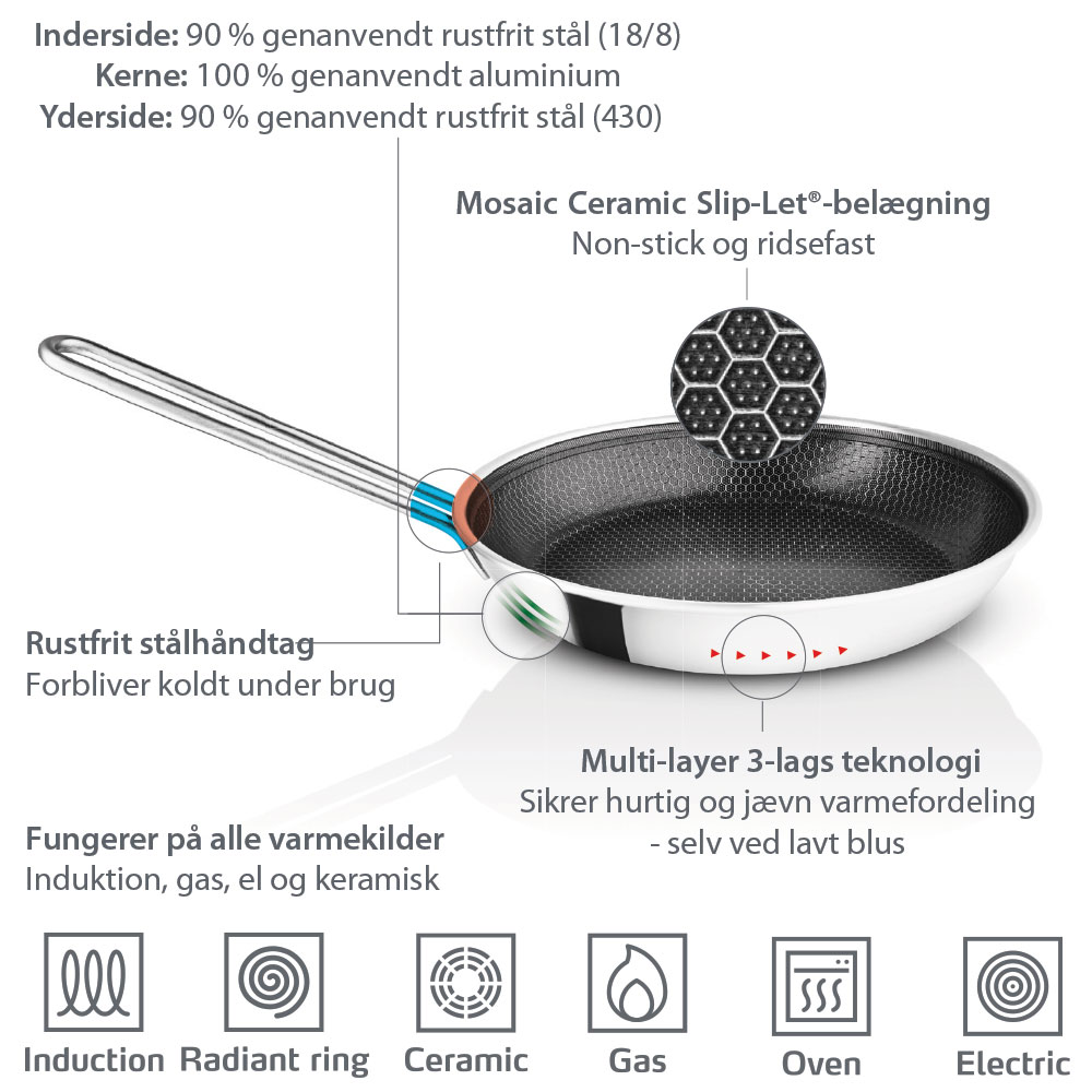 Uundværlige allround-pander med banebrydende teknologi og et unikt mosaikmønster. Den keramiske Slip-let® belægning reducerer fedtforbruget, giver en perfekt stegeskorpe og gør rengøringen enkel.
